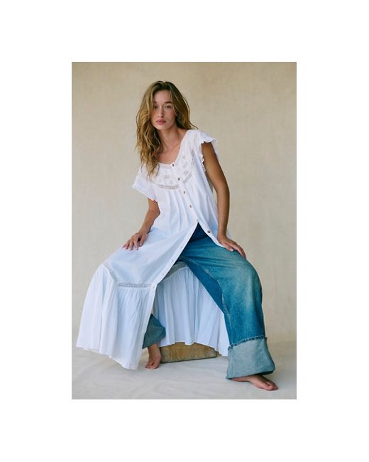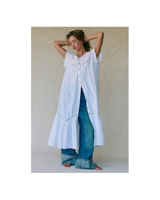 So romantic with vintage-inspired charm, this sweet midi from our free-est collection will turn heads with every wear. **Fit:** Billowy, shapeless silhouette throughout **Features:** Button-up closures, lace piecing throughout, ruffle trimming, pleating at the front for added shape **Why We ❤ It:** Easy on its own or layered over bold bottoms, this style has endless ways to wear. Aster Midi by free-est at Free People in Ivory, Size: XS
