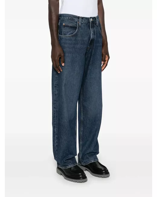 blue Regenerative Cotton denim washed concealed fly and button fastening belt loops classic five pockets tapered leg