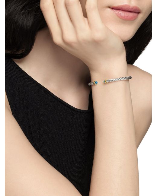 David Yurman's artistic signature, Cable began as a bracelet that he hand-twisted from 50 feet of wire. For the past 30 years, he has evolved the twisted helix into a myriad of designs. Sterling silver with 14-karat yellow gold Bracelet, 4mm Made in USA ABOUT THE BRAND David, a sculptor, and his wife, Sybil, a painter, launched their innovative jewelry brand in 1980 in New York City. Since then, the American design house has pioneered cutting-edge collections-from its iconic combination of sterling silver and diamonds to signature pinky rings. Today, with their son Evan, the Yurmans continue to deliver timeless- pieces inspired by nature, art, ancient symbols and Manhattan's stunning architecture. Lsd Jewelry - David Yurman > David Yurman > Saks Fifth Avenue > Barneys. David Yurman. Color: Blue Topaz. Size: XL.