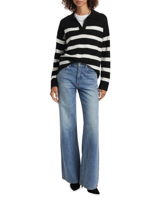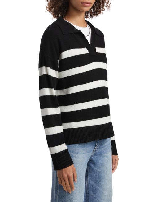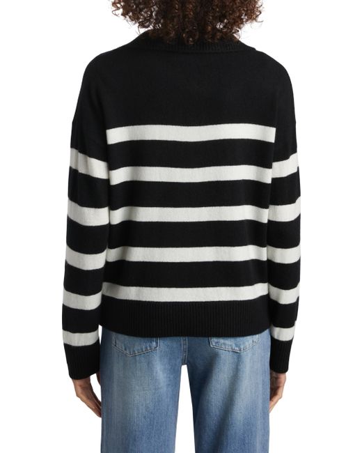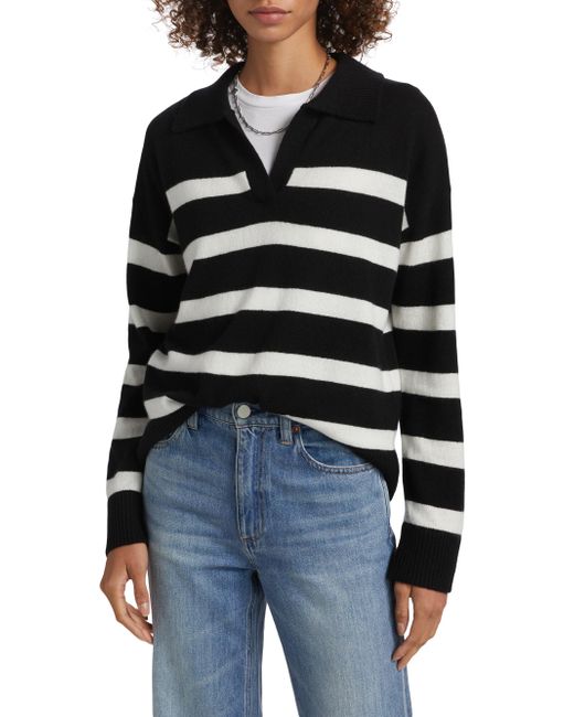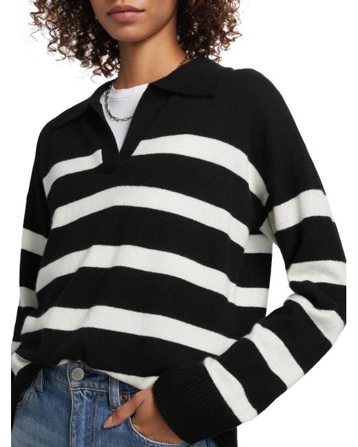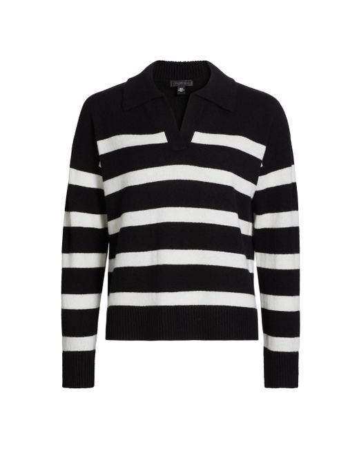 This Saks Fifth Avenue cashmere sweater is designed with contrast stripes. Johnny collar Drop shoulders Long sleeves Pulls over 100% cashmere Dry clean Imported SIZE & FIT About 18" from shoulder to hem Model measurements: 5'10" tall Model is wearing a US size Small. Private Brand - Sfa Knitwear > Saks Fifth Avenue > Saks Fifth Avenue > Barneys. Saks Fifth Avenue. Color: Black Frost White. Size: XS.