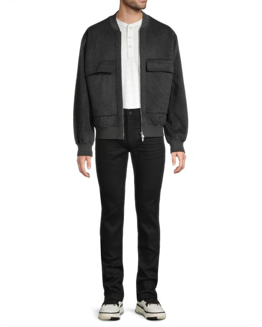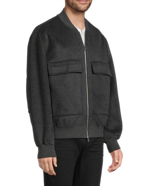The Alder bomber jacket from Moose Knuckles is crafted of a wool, cashmere, and silk blend. This relaxed-fit style is detailed with two oversized flap-patch pockets on the chest, rib-knit trim, and a front two-way zip closure. Baseball collar Long sleeves, Chest flap-patch pockets Rib-knit trim Front two-way zip closure 80% wool/ 10% cashmere/ 10% silk Dry clean Imported SIZE & FIT Relaxed About 26.5" from shoulder to hem Model measurements: 6'2" tall, 40" chest, 31" waist Model is wearing a US size Medium ABOUT THE BRAND The Canadian outerwear brand's parkas are designed to withstand extreme temps. Founded in 2007, Moose Knuckles melds function with fashion. Crafted by hand, their durable, fur-trimmed jackets are designed to protect from wind and water, with down insulation for maximum warmth. The label now also offers hats and gloves to finish your cold-weather look. Mens Modern Coll & Outer - Contemporary Outerwear > Moose Knuckles > Saks Fifth Avenue > Barneys. Moose Knuckles. Color: Charcoal With Black. Size: Medium.