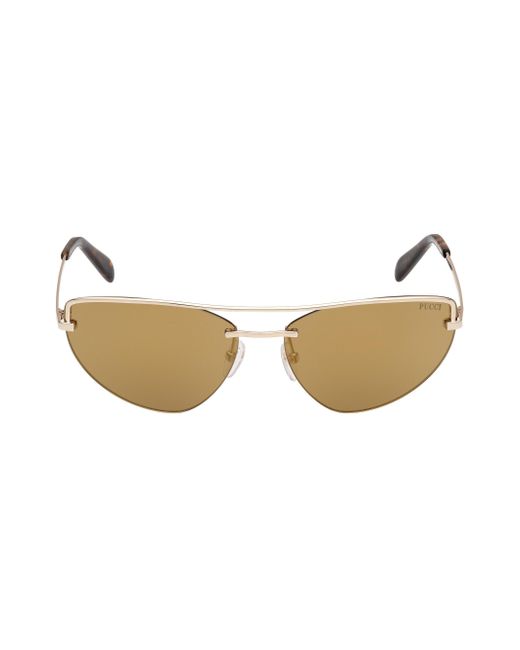 From the Pucci Collection. Crafted in Italy, these Emilio Pucci cat-eye sunglasses feature mirrored lenses and a sleek metal frame. 100% UV protection Mirrored lenses Includes case and cleaning cloth Metal Made in Italy SIZE 59mm lens width 15mm bridge width 140mm temple length. Soft Accessories - Sunglasses > Pucci > Saks Fifth Avenue > Barneys. Pucci. Color: Gold Brown Mirror.