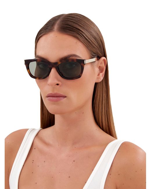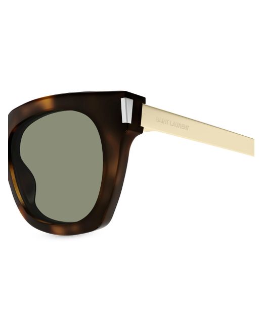From the Combi Corner Angle Bold Collection. Designed with pieced construction, Saint Laurent's two-tone sunglasses feature a classic rectangular silhouette with logo-engraved gold metal arms. 100% UV protection Solid lenses Case and cleaning cloth included Acetate/bio nylon/metal Made in Italy SIZE 53mm lens width 20mm bridge width 145mm temple length ABOUT THE BRAND Founded in 1961, Yves Saint Laurent's groundbreaking styles have become iconic cultural and artistic references, and its founder, the couturier Yves Saint Laurent, secured a reputation as one of the twentieth century's foremost designers. Part of the Kering Group, the House kept true to its identity of absolute modernity and fashion authority. Under the creative direction of Anthony Vaccarello, appointed in April 2016, the House offers a broad range of women's and men's ready-to-wear products, leather goods, shoes, jewelry and eyewear. It is also a major force in fragrances and cosmetics. Soft Accessories - Sunglasses > Saint Laurent > Saks Fifth Avenue > Barneys. Saint Laurent. Color: Havana.