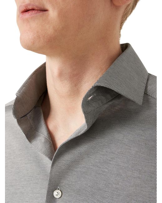 Eton's cotton jersey shirt is styled with a spread collar, button cuffs, and a button-front closure. Spread collar Long sleeves, button cuffs Shirttail hem Button-front closure 100% cotton Machine wash Imported SIZE & FIT Contemporary fit Model measurements: 6'2" tall, 40" chest, 31" waist Model is wearing a US size 40 ABOUT THE BRAND The Italian fashion house renowned for its eclectic prints and signature paisley motif has been a family-run business since its inception in 1968. Creative Director Marco de Vincenzo continues the brand's legacy with the rich textiles and patterns still used in its clothing, accessories and home décor. Men Luxury Coll - Eton > Eton > Saks Fifth Avenue > Barneys. Eton. Color: Grey. Size: 15.