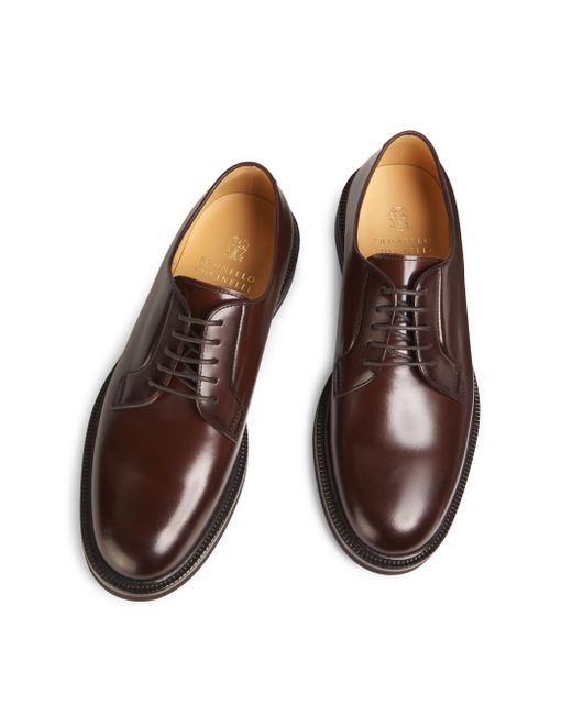 Made in Italy, these Brunello Cucinelli derbys feature a sturdy synthetic sole and a leather upper for a refined look. Round toe Lace-up style Leather upper Synthetic sole Made in Italy SIZE Platform height: about 1.5" (38mm) ABOUT THE BRAND Beginning with a focus in masterfully constructed cashmere pieces, Brunello Cucinelli's namesake heritage label quickly grew to be synonymous with fine Italian craftsmanship and casual luxury. Every piece-from knitwear to suiting to accessories-is made in Cucinelli's Solomeo studio, located in a 14th-century Italian village. Men's Shoes - Mens Classic Footwear > Brunello Cucinelli > Saks Fifth Avenue > Barneys. Brunello Cucinelli. Color: Brown. Size: 8.