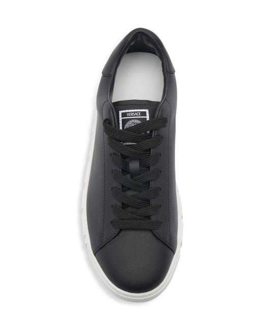 Versace's Responsible sneakers are crafted of nylon and embossed with the brand's La Greca design at the midsoles. These low-top shoes are complete with branding at the tongues. Round toe Lace-up style Nylon upper Polyester lining TPU sole Made in Italy This brand fits slightly larger. Consider ordering a size down. ABOUT THE BRAND Founded in 1978, Versace is instantly recognizable by the signature Medusa head logo, chosen by founder Gianni Versace for its Greek symbolism. The Italian label is known for its luxe, bold clothing, sneakers, shoes and accessories-think gilding, oversized logos and punchy prints. Since taking over artistic direction, Gianni's sister Donatella Versace has maintained the brand's strong identity, with a renewed vision to give customers the ultimate freedom to express themselves. Men's Shoes - Designer Shoes > Versace > Saks Fifth Avenue > Barneys. Versace. Color: Black. Size: 7.
