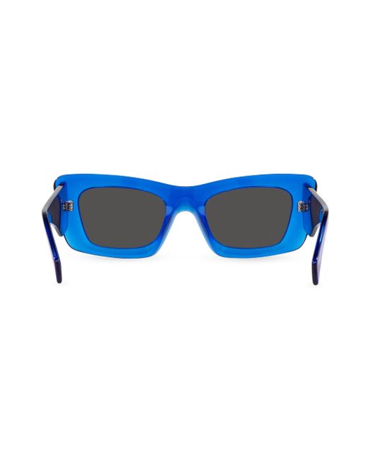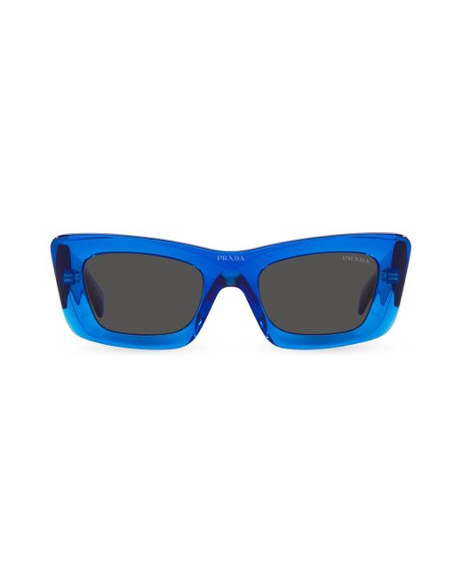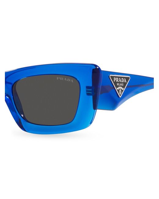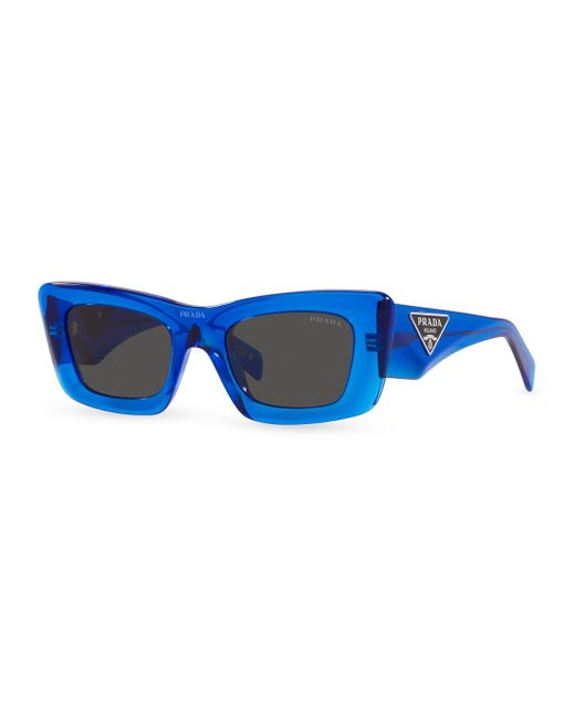 Prada's sleek rectangular sunglasses boast a signature triangular logo plaque at the temple. UV protection Solid lenses Case and cleaning cloth included Plastic Made in Italy SIZE 50mm lens width 21mm bridge width 140mm temple length ABOUT THE BRAND Since 1913, Prada has been synonymous with cutting-edge style. Its intellectual universe combines concept, structure and image through codes that go beyond trends. Focusing on experimentation, its fashion has become a benchmark to those who challenge conventions. Soft Accessories - Sunglasses > Prada > Saks Fifth Avenue > Barneys. Prada. Color: Blue.