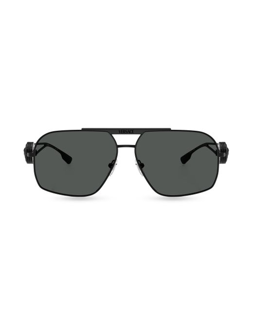 These Versace sunglasses are made with a lightweight metal frame. This pair features a double-bridge design adorned with a subtle logo. 100% UV protection Polarized lenses Steel Made in Italy SIZE 62mm lens width 13mm bridge width 130mm temple length ABOUT THE BRAND Founded in 1978, Versace is instantly recognizable by the signature Medusa head logo, chosen by founder Gianni Versace for its Greek symbolism. The Italian label is known for its luxe, bold clothing and accessories-think gilding, oversized logos and punchy prints. Since taking over artistic direction, Gianni's sister Donatella Versace has maintained the brand's strong identity, with a renewed vision to give customers the ultimate freedom to express themselves. Soft Accessories - Men Sunglasses > Versace > Saks Fifth Avenue > Barneys. Versace. Color: Matte Black Dark Grey.