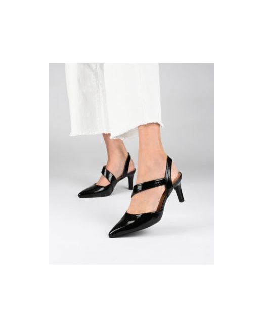 Step into sophisticated allure with the Scarlett stiletto heel from Journee Collection, featuring a pointed toe and an elegant 2 3/4" stiletto heel. Crafted from faux leather, these heels showcase an ankle strap with a pull-on closure for a seamless and fashionable look. The 4mm Tru Comfort Foam footbed, coupled with the man-made outer sole, ensures both comfort and style, making the Scarlett stiletto heel a standout choice for any glamorous occasion.