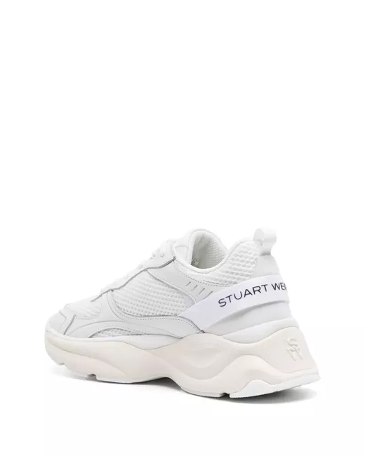 white multi-panel design mesh panelling logo-debossed tongue logo patch to the side branded heel counter pull-tab at the heel front lace-up fastening almond toe branded insole chunky rubber sole