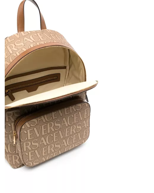 brown leather trim all-over logo print single flat top handle shoulder straps two-way zip fastening front zip-fastening pouch pocket internal zip-fastening pocket main compartment