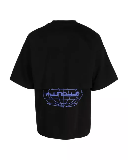 black cotton blend jersey texture stretch-design double layer crew neck straight hem T-shirt: logo print at the chest short sleeves cropped Vest: logo print at the chest logo print to the rear sleeveless