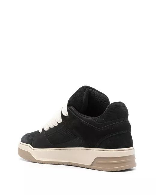black calf suede front lace-up fastening logo lettering at the tongue perforated toebox round toe branded insole flatform sole chunky rubber sole