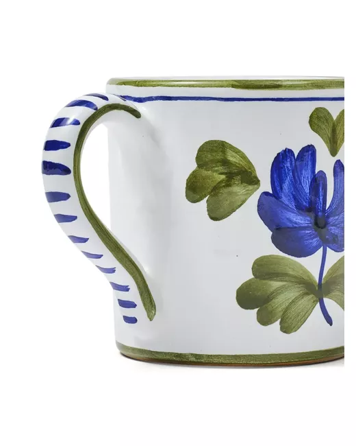 blue/white/grass green ceramic floral motif contrasting trim single rounded handle to the side 8x9cm