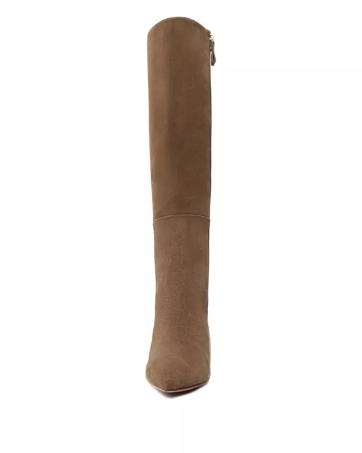 cognac brown suede knee-length side zip fastening pointed toe leather sole 85mm block heel