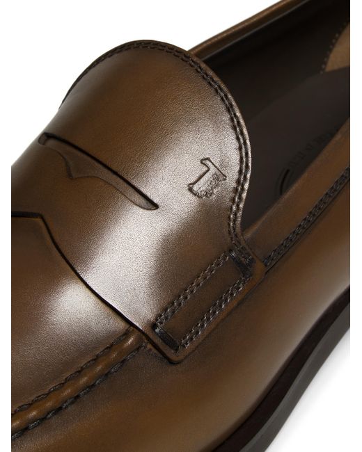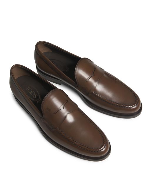 Sophisticated penny loafers crafted of luxurious, buttery-soft leather. Leather upper Round toe Pull-on style Rubber sole Lining: Leather Made in Italy Please note This style runs large. It is recommended to order a size down. Men's Shoes - Tods Mens Footwear > Tod's > Saks Fifth Avenue > Barneys. Tod's. Color: Cacao. Size: 6.