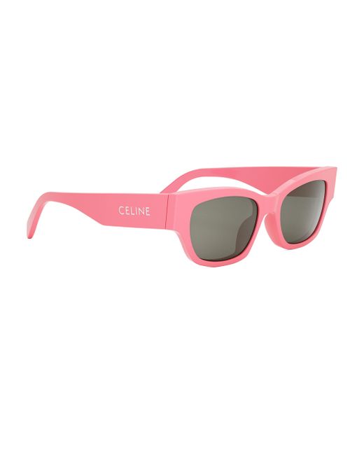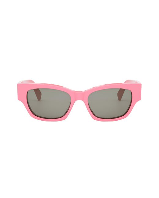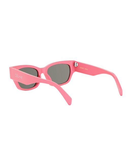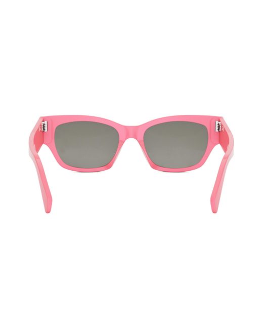 Rectangular shiny acetate sunglasses with solid smoke lenses. 100% UV protection Solid lenses Case and cleaning cloth included Acetate Made in Italy SIZE 54mm lens width 18mm bridge width 145mm temple length. Soft Accessories - Sunglasses > Celine > Saks Fifth Avenue > Barneys. CELINE. Color: Pink Smoke.
