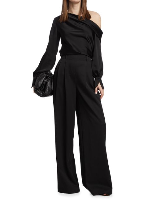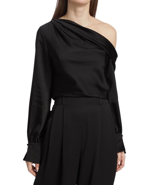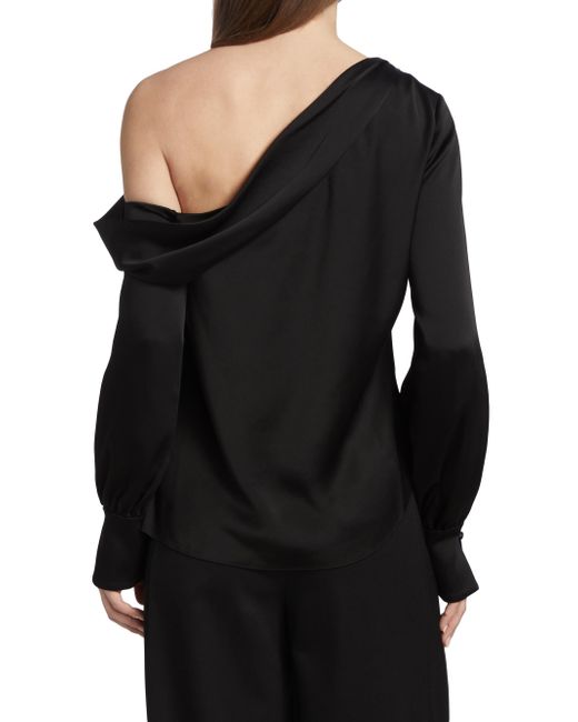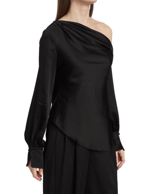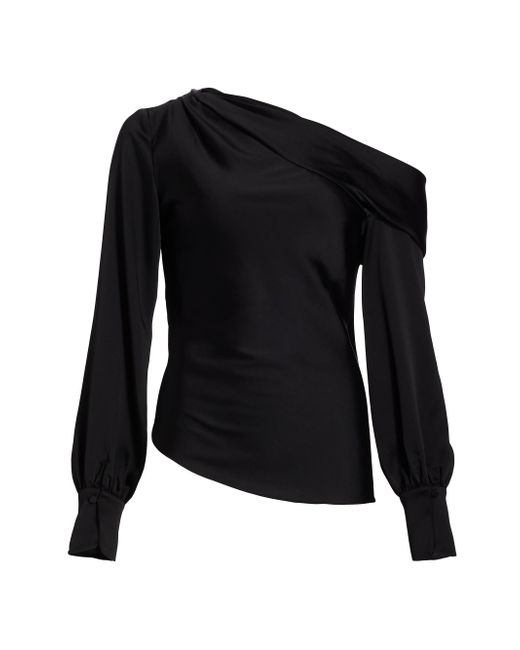 This satin blouse is designed with a layered one-shoulder neckline and long bishop sleeves. One-shoulder neck Long sleeves Pullover style Shell: 89% other fibers 11% polyethylene Dry clean Imported SIZE & FIT About 25" from shoulder to hem Model measurements: 5'10" tall Model is wearing a US size Small. Contemporary Sportswear - Workshop > Simkhai > Saks Fifth Avenue > Barneys. SIMKHAI. Color: Black. Size: XS.