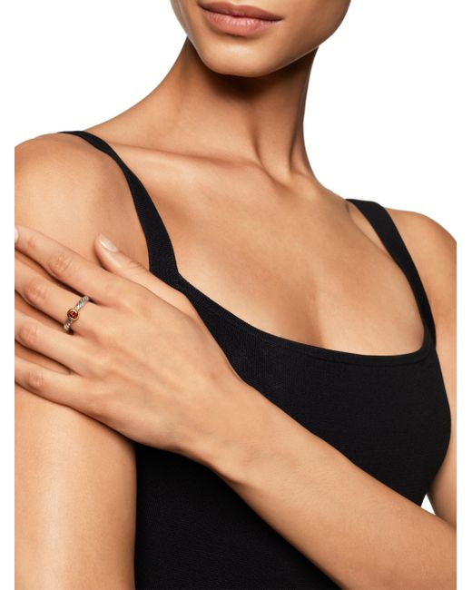 David Yurman's iconic Cable motif beautifully adorns a universal symbol or shape, creating a modern talisman meant to be collected, combined and treasured. Sterling silver with 14-karat yellow gold Ring, 2.8mm Stone, 4mm Imported ABOUT THE BRAND David, a sculptor, and his wife, Sybil, a painter, launched their innovative jewelry brand in 1980 in New York City. Since then, the American design house has pioneered cutting-edge collections-from its iconic combination of sterling silver and diamonds to signature pinky rings. Today, with their son Evan, the Yurmans continue to deliver timeless pieces inspired by nature, art, ancient symbols and Manhattan's stunning architecture. Lsd Jewelry - David Yurman > David Yurman > Saks Fifth Avenue > Barneys. David Yurman. Color: Rhodolite Garnet. Size: 6.