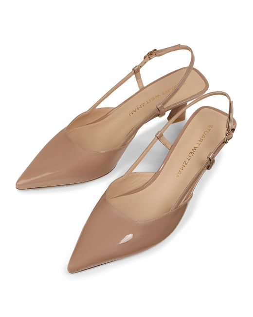 Stuart Weitzman's Vinnie pumps are crafted of patent leather for a sleek, glossy finish. The pair features a buckle closure and a comfortable heel height. Point toe Buckle closure Patent leather upper Leather lining Leather sole Made in Spain SIZE Heel: about 2" (50mm) ABOUT THE BRAND Designer Stuart Weitzman started his career designing for his father's shoe company, before launching his own brand in 1986. Known for his glamorous pumps and over-the-knee boots, Weitzman has also incorporated unique materials in his designs, ranging from Lucite and wallpaper to cork, vinyl and even gold. Today, the label continues to create classic, feminine silhouettes that balance both comfort and style. Womens Shoes - Stuart Weitzman Wmn Shoe > Stuart Weitzman > Saks Fifth Avenue > Barneys. Stuart Weitzman. Color: Fawn. Size: 12.