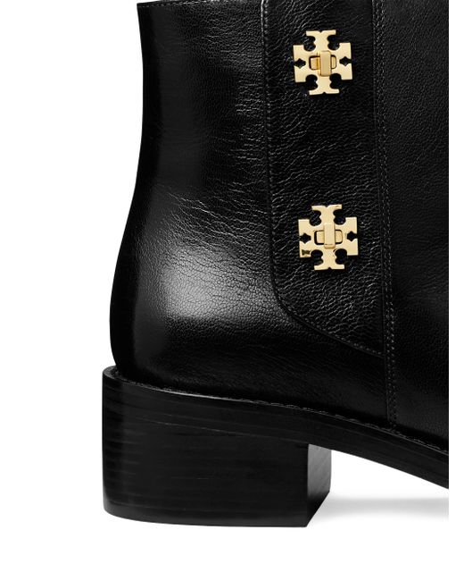 Tory Burch's T-Lock ankle boots are crafted of leather. Round toe T-lock closure Leather upper Leather sole Imported SIZE Heel: about 1.4" (35mm) ABOUT THE BRAND Since debuting her brand in 2004, New York-based designer Tory Burch has made an impact on the fashion world with her handbags and shoes, and playful-yet-polished clothing. Today, Burch remains inspired by color and travel, with her vibrant collections bursting with prints, and her instantly recognizable double-T logo drawing from Moroccan architecture. Womens Shoes - Tory Burch Womens Shoes > Tory Burch > Saks Fifth Avenue > Barneys. Tory Burch. Color: Perfect Black. Size: 10.