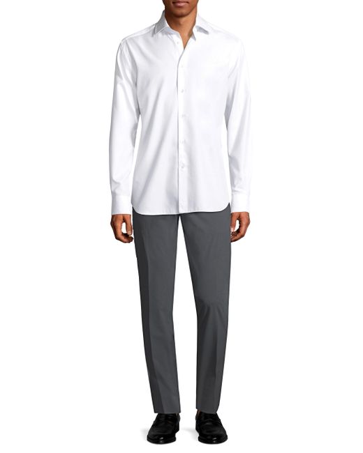 Crisp styling and a tailored silhouette define these stretch trousers. Banded waist with belt loops Zip fly with button tab closure Back button welt pockets Polyamide/elastane Machine wash Imported SIZE & FIT Tailored fit Rise, about 11" Inseam, about 36.5" Leg opening, about 14.5" Please note this item is not hemmed. For basic alterations and hemming, book an appointment online at your local Saks Fifth Avenue location. Men Luxury Coll - Trousers > Pt Torino > Saks Fifth Avenue > Barneys. PT Torino. Color: Dark Grey. Size: 30.