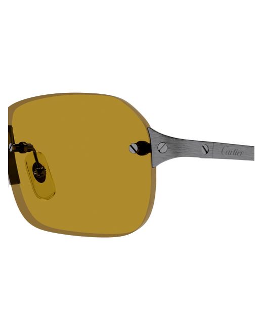 From the Santos Classic Collection. These Cartier sunglasses are crafted of ruthenium-plated metal in a rimless rectangular design. 100% UV protection Solid lenses Metal/bio nylon Made in France SIZE 56mm lens width 20mm bridge width 145mm temple length ABOUT THE BRAND Regarded as one of the most prestigious jewelry brands in the world, Cartier is known for exquisite craftsmanship and timeless designs. Founded in Paris in 1847 by Louis-François Cartier, the iconic jewelry house continues to create sought-after pieces like the celebrated Panthère de Cartier watches. Soft Accessories - Men Sunglasses > Cartier > Saks Fifth Avenue > Barneys. Cartier. Color: Ruthenium Yellow.