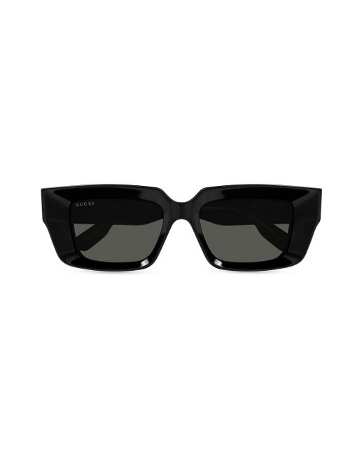 From the Thickness Collection. These sunglasses by Gucci are crafted of an acetate blend, featuring a rectangular silhouette and accented by logo detailing and rivets. 100% UV protection Solid lenses Acetate/bio-nylon Made in Italy SIZE 54mm lens width 18mm bridge width 145mm temple length ABOUT THE BRAND First launched in 1921, the Italian luxury fashion house quickly became known for its fine leather craftsmanship and accessories. Today, the visionary brand continues to redefine fashion trends, while celebrating creativity and innovation. Gucci's contemporary designs include shoes, clothing and accessories-often boasting the distinctive Horsebit motif. Soft Accessories - Sunglasses > Gucci > Saks Fifth Avenue > Barneys. Gucci. Color: Black Grey.