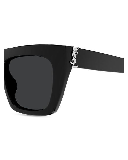 From the Monogram Hinge Collection. These Saint Laurent sunglasses are detailed with a hardware logo at the corners and designed with thick acetate frames. 100% UV protection Solid lenses Includes case and cleaning cloth Acetate/nylon Made in Italy SIZE 52mm lens width 20mm bridge width 140mm temple length Please note: Lens replacement is optional. ABOUT THE BRAND Founded in 1961, Yves Saint Laurent's groundbreaking styles have become iconic cultural and artistic references, and its founder, the couturier Yves Saint Laurent, secured a reputation as one of the twentieth century's foremost designers. Part of the Kering Group, the House kept true to its identity of absolute modernity and fashion authority. Under the creative direction of Anthony Vaccarello, appointed in April 2016, the House offers a broad range of women's and men's ready-to-wear products, leather goods, shoes, jewelry and eyewear. It is also a major force in fragrances and cosmetics. Soft Accessories - Sunglasses > Saint Laurent > Saks Fifth Avenue > Barneys. Saint Laurent. Color: Black Dark Grey.
