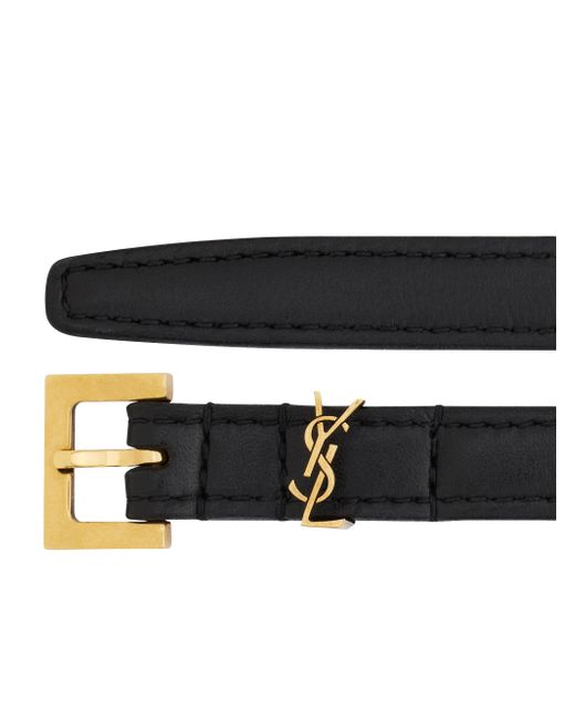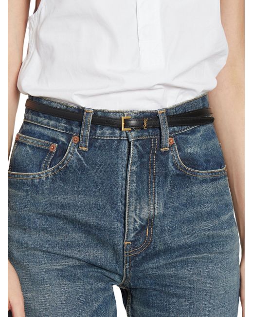 Extra thin belt featuring a square buckle and cassandre loop. Dimensions: 1 cm / 0.4" Bronze-toned hardware Adjustable buckle closure 95% calfskin leather, 5% brass Made in Italy. Lsd Handbags - Saint Laurent > Saint Laurent > Saks Fifth Avenue > Barneys. Saint Laurent. Color: Black. Size: 30.