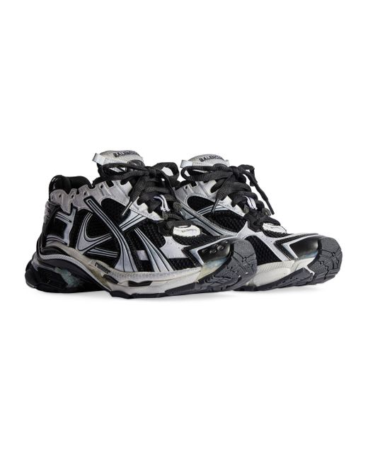 Runner Sneakers in mesh and nylon. Leather free Sneakers Mesh and nylon Worn-out effect Printed size at the edge of the toe Debossed size at back Runner logo printed on exterior Balenciaga logo embroidered on the tongue Balenciaga logo at the back of the heel Back pull-on tab Imported Wipe with a soft cloth. Lsd Rtw - Balenciaga Rtw > Balenciaga > Saks Fifth Avenue > Barneys. Balenciaga. Color: Black White Multicolor. Size: 7.