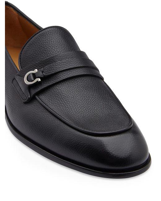 Made in Italy, Ferragamo's Desio loafers are crafted of smooth leather for a luxurious feel. This slip-on pair is designed with an almond toe and a comfortable rubber sole. Almond toe Slips on Leather upper Leather lining Rubber sole Made in Italy WIDTH Narrow: D Standard: EE Wide: EEE This brand fits slightly larger. Consider ordering half a size down. ABOUT THE BRAND Italian designer Salvatore Ferragamo began his journey in 1927 with a vision of creating the world's most beautiful shoes. The label expanded to menswear in the 1970s, and remains famed for its made-in-Italy pieces. The craftsmanship inherent in its shoes is also found in accessories like sunglasses, belts and ties. The brand's signature Gancini logo-a backwards horseshoe-can be found on its classic loafers and fine leather goods. Men's Shoes - Ferragamo Mens Shoes > Ferragamo > Saks Fifth Avenue > Barneys. FERRAGAMO. Color: Nero New Biscotto. Size: 9.