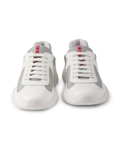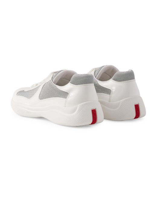 These patent leather sneakers with bike fabric inserts are inspired by an iconic aesthetic. The unmistakable Prada linea rossa logo on the tongue and sole enhances the design. Upper: patent leather and technical fabric Prada linea Rossa logo on the tongue and sole 40 mm / 1.5'' light Flexible rubber sole Rubber tread Made in Italy. Lsd Rtw - Prada Rtw > Prada > Saks Fifth Avenue > Barneys. Prada. Color: White. Size: 14.