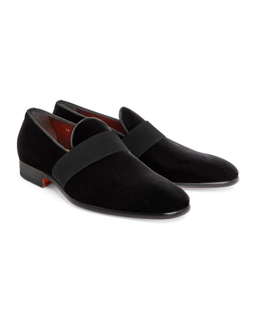 Santoni's velvet loafers highlight timeless grosgrain straps across the vamps. They are finished with stacked heels. Almond toe Slips on Velvet textile upper Made in Italy. Men's Shoes - Mens Classic Footwear > Santoni > Saks Fifth Avenue > Barneys. Santoni. Color: Black. Size: 8.