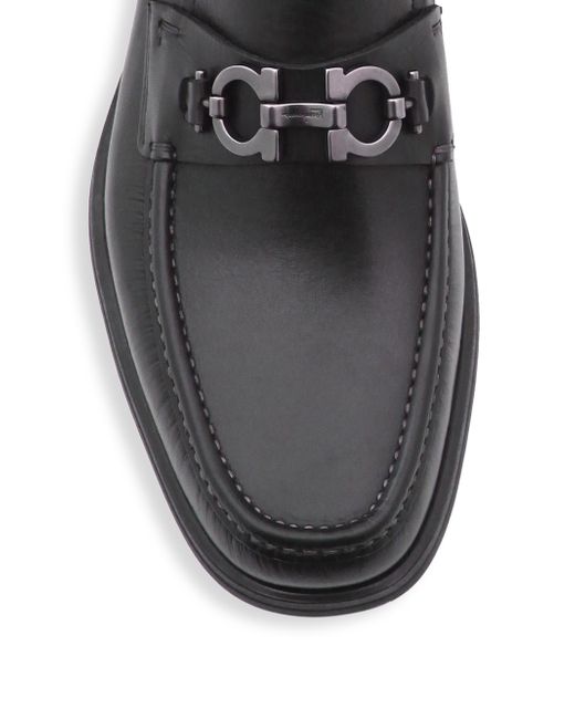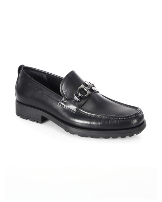 David leather loafers with bit on lug rubber sole. Leather upper and lining Moc toe Slip-on style Horsebit at vamp Stacked heel Box and dust bag included Rubber sole Made in Italy WIDTH Narrow: D Standard: EE Wide: EEE This brand fits slightly larger. Consider ordering half a size down. ABOUT THE BRAND Italian designer Salvatore Ferragamo began his journey in 1927 with a vision of creating the world's most beautiful shoes. The label expanded to menswear in the 1970s, and remains famed for its made-in-Italy pieces. The craftsmanship inherent in its shoes is also found in accessories like sunglasses, belts and ties. The brand's signature Gancini logo-a backwards horseshoe-can be found on its classic loafers and fine leather goods. Men's Shoes - Ferragamo Mens Shoes > Ferragamo > Saks Fifth Avenue > Barneys. FERRAGAMO. Color: Nero. Size: 8.5.
