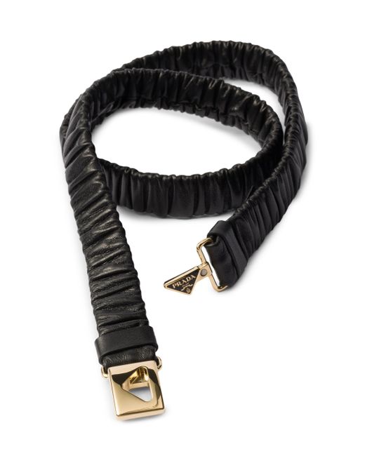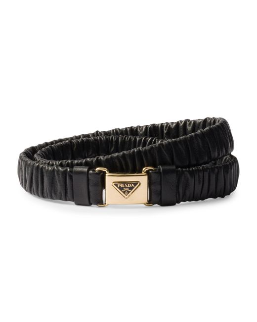 The refined design of this belt combines the soft touch of draped leather with the elegant buckle decorated with the triangle logo. Enameled metal logo buckle Imported 100% Lamb leather. Lsd Rtw - Prada Rtw > Prada > Saks Fifth Avenue > Barneys. Prada. Color: Black. Size: Small.
