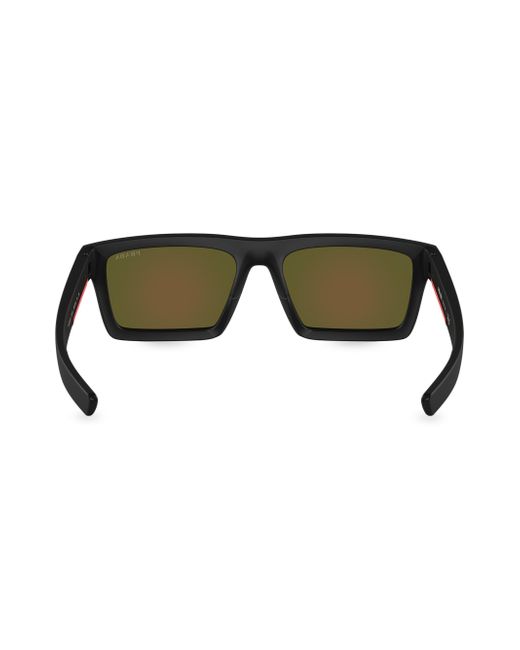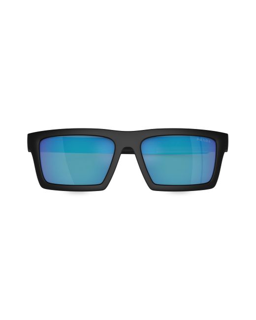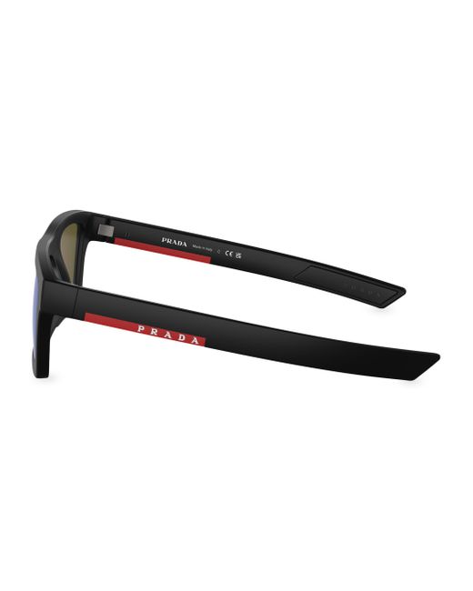 This Prada Linea Rossa style features contemporary new straight temples with the iconic red stripe logo. 100% UV protection Tinted lenses Includes case and cleaning cloth Plastic Made in Italy SIZE 55mm lens width 18mm bridge width 140mm temple length. Soft Accessories - Men Sunglasses > Prada Linea Rossa > Saks Fifth Avenue > Barneys. Prada Linea Rossa. Color: Matte Black Blue Mirror.