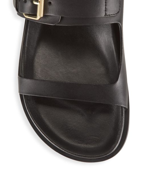 Crafted of leather, these Prince sandals from A.Emery feature an open toe, moulded footbed, and top buckle detail. Open toe Adjustable buckle Slips on Leather upper Leather lining Rubber sole Imported. Womens Shoes - Workshop Shoes > A.emery > Saks Fifth Avenue > Barneys. A.Emery. Color: Black. Size: 7.