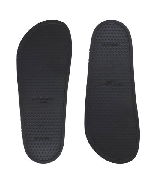 Fresh style comes courtesy of the Givenchy slides, featuring a wide band emblazoned with the brand's signature logo. Ready for instant designer appeal when poolside, the soles are embossed with the star motif to finish.