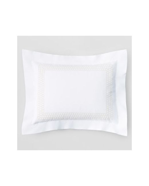 Crafted in luxurious, crisp 520-thread count cotton percale, this sham by Matouk features a frame of geometric embroidery.