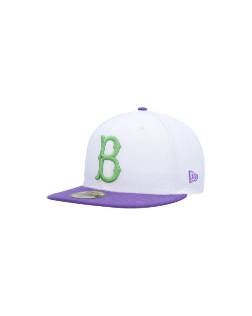 Add a snazzy hat to your lineup of Brooklyn Dodgers gear by grabbing this Side Patch 59FIFTY fitted hat from New Era. The purple and green embroidery pops off the solid white panels for a bold addition to any game day look. The fitted construction provides a consistent wear each time you reach for this cap.