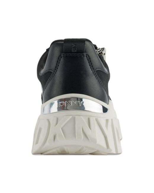 Signature style adds texture dimension to sporty wedges paired with exposed zips in the cool Lakelyn sneakers from Dkny.