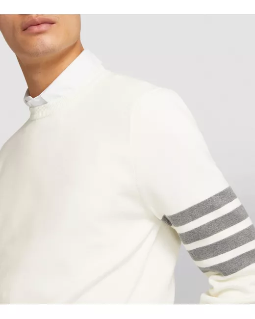 The 4-Bar stripes found on the sleeve of this sweater are a part of Thom Browne's philosophy, as a label and as an inherent part of the eponymous founder's world view: that uniformity can show individuality and confidence. You may be one (4) bar in the brand's legions of devoted followers, but that only adds to the charm and charisma you exude naturally.