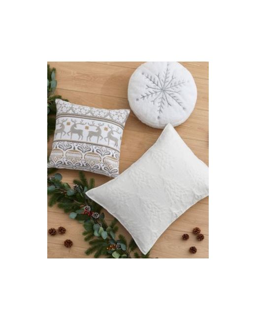 The O Christmas Tree Snowflake Pillow by Levtex home features a great snowflake embroidered in silver-tone stitch onto a white soft plush offered in white and silver, this decorative pillow is 16in. Round and comes feather-filled.