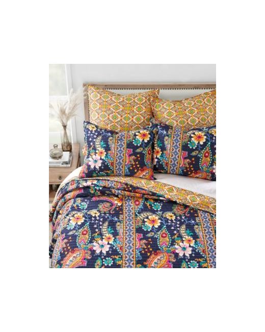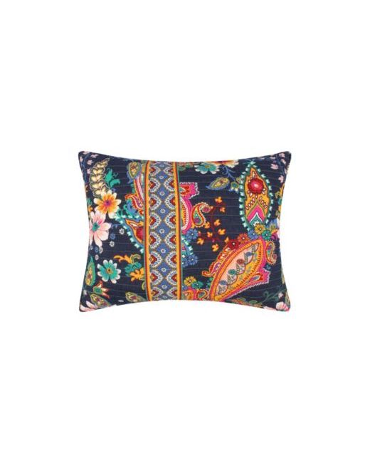 The Bertelli navy floral pillow by Levtex features a magnificently quilted floral print on a navy ground. Offered in navy, ochre, pink and green, this decorative pillow is 12" x 24" and comes feather-filled.