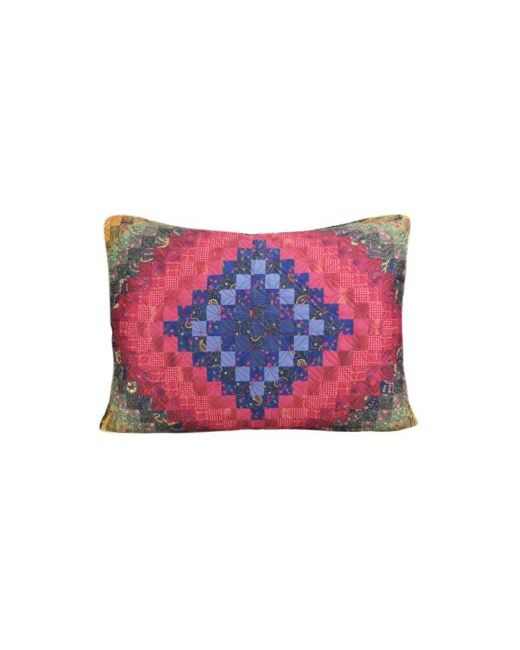 This classic yet modern rectangle decorative pillow features embroidered red blue flowers a joined by the phrase "Home Sweet Home".