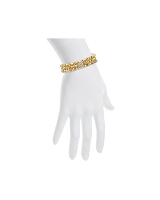 Women's Golden Cubic Zirconia Bubble Initial Stretch Bracelet Set A