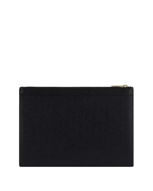 black leather calf leather logo stamp to the front ribbon band top zip fastening contrast lining internal logo patch
