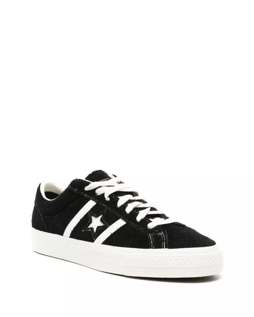 black calf suede panelled design logo-debossed tongue star patch detail stripe detailing round toe front lace-up fastening branded insole flat rubber sole