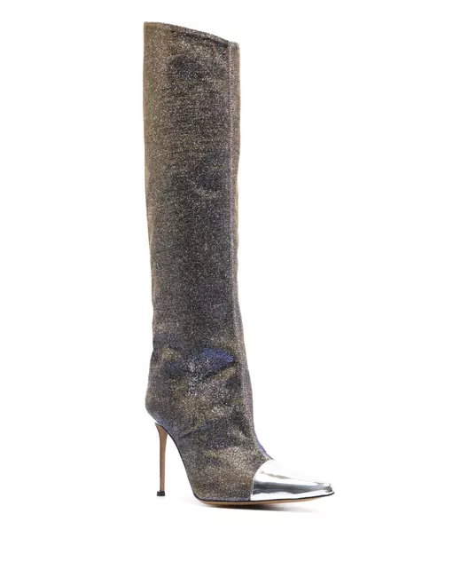 navy blue/silver-tone calf leather glitter detailing metal toecap pointed toe high stiletto heel